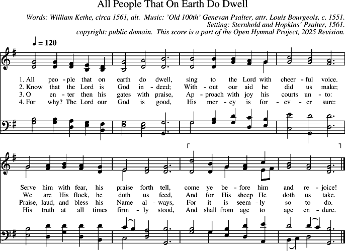 Music: 'Old 100th' Genevan Psalter, attr. Louis Bourgeois, c. 1551.