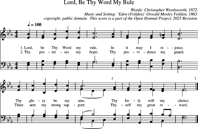 1. Lord, be Thy Word my rule, In it may I rejoice; Thy glory be my aim, Thy holy will my choice;